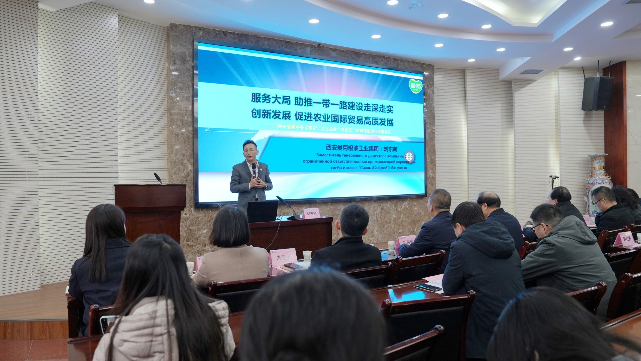 刘东萌以西安爱菊粮油工业集团深耕中亚市场、践行“一带一路”倡议的涉农行业国际合作发展历程为主线,结合集团在哈萨克斯坦开展农业种植、粮油加工、物流仓储、跨境贸易等全产业链布局的实践案例,生动展示了本土农业龙头企业“走出去”的典范路径,深入剖析了企业在跨文化沟通、国际政策适配、本地化运营等方面的经验与启示。