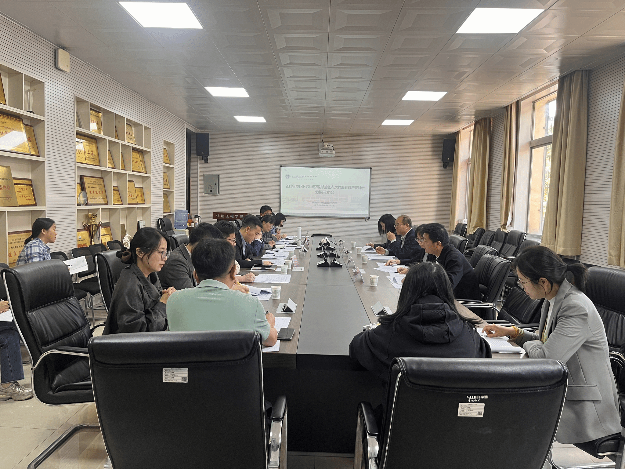 4月25日,设施农业领域高技能人才集群培养研讨会在西校召开,副校长祝战斌出席会议并讲话。来自西北农林科技大学、杨凌雨露节水绿化工程有限公司、陕西杨凌农科集团有限公司、杨凌棚掌柜信息科技有限公司的行业专家和企业负责人,教务处、生物工程学院负责人及生物工程学院、建筑工程学院教师代表20余人参加会议。