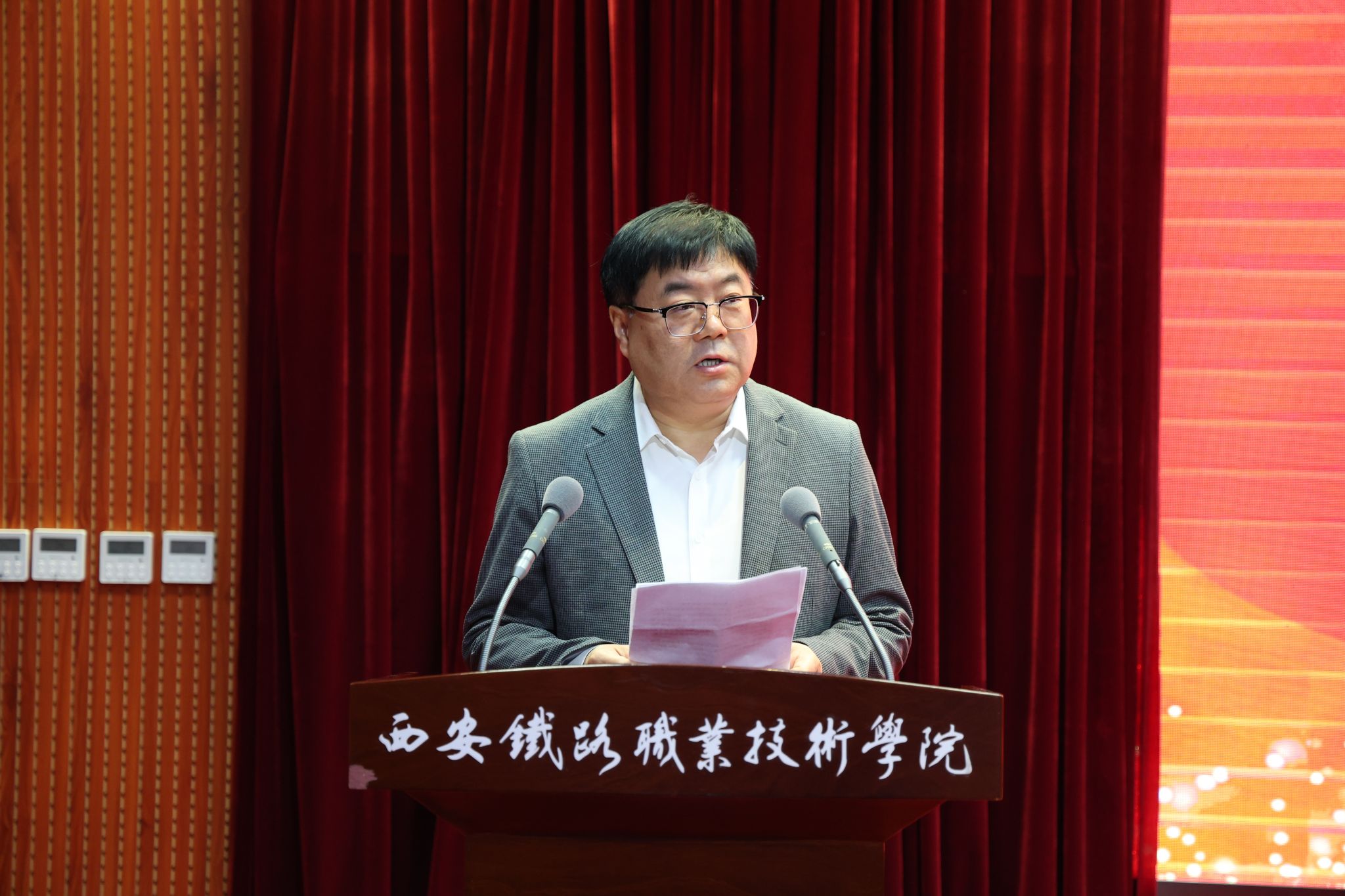4月24日,由陕西高职院校“大思政课”建设协同发展联盟主办的2026年陕西高职院校“精彩一课”教学展示活动在西安铁路职业技术学院成功举办,联盟副理事长、校党委副书记刘瑞明,西安铁路职业技术学院院长陈红出席活动并致辞。来自全省20余所高职院校马克思主义学院院长(思政部主任)、思政课教师等170余人参加。